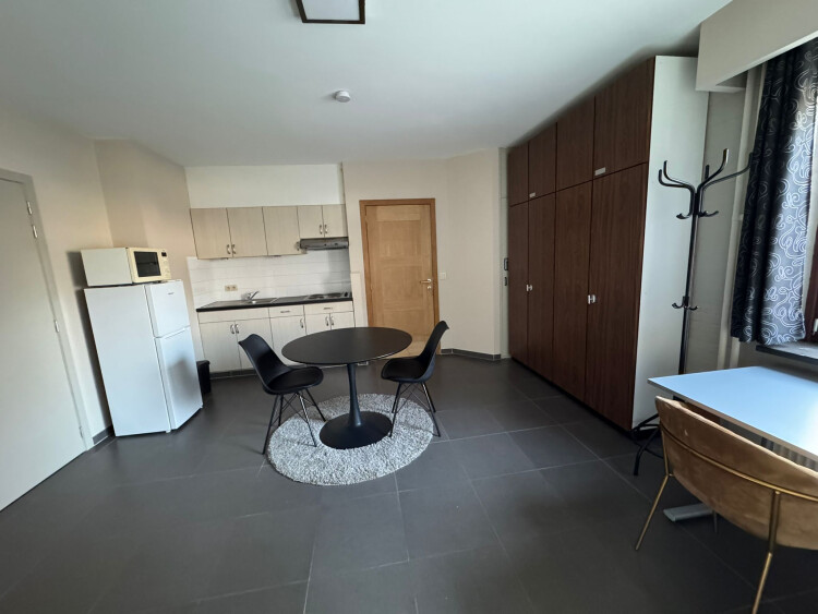 Zeer mooie ruime volledig gemeubileerde studentenstudio op het gelijkvloers. Deze beschikt over alle voorzieningen. -Uitgeruste Keuken -Uitgeruste Badkamer -Toilet -Slaapkamer - Bed met matras en beschermer -bureau en stoel- tafel met stoelen- bureaulamp- kapstok -Gratis parkeerplaats -Fietsberging -Afvalberging -Openbaarvervoer op 1min afstand. Universiteit op 30min rijden.