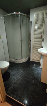 Badkamer is voorzien van een douchecabine, toilet en vaste wastafel.